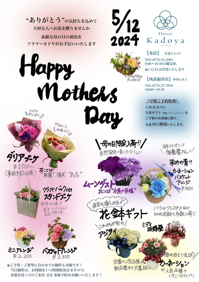 2024/5/12 母の日の営業について